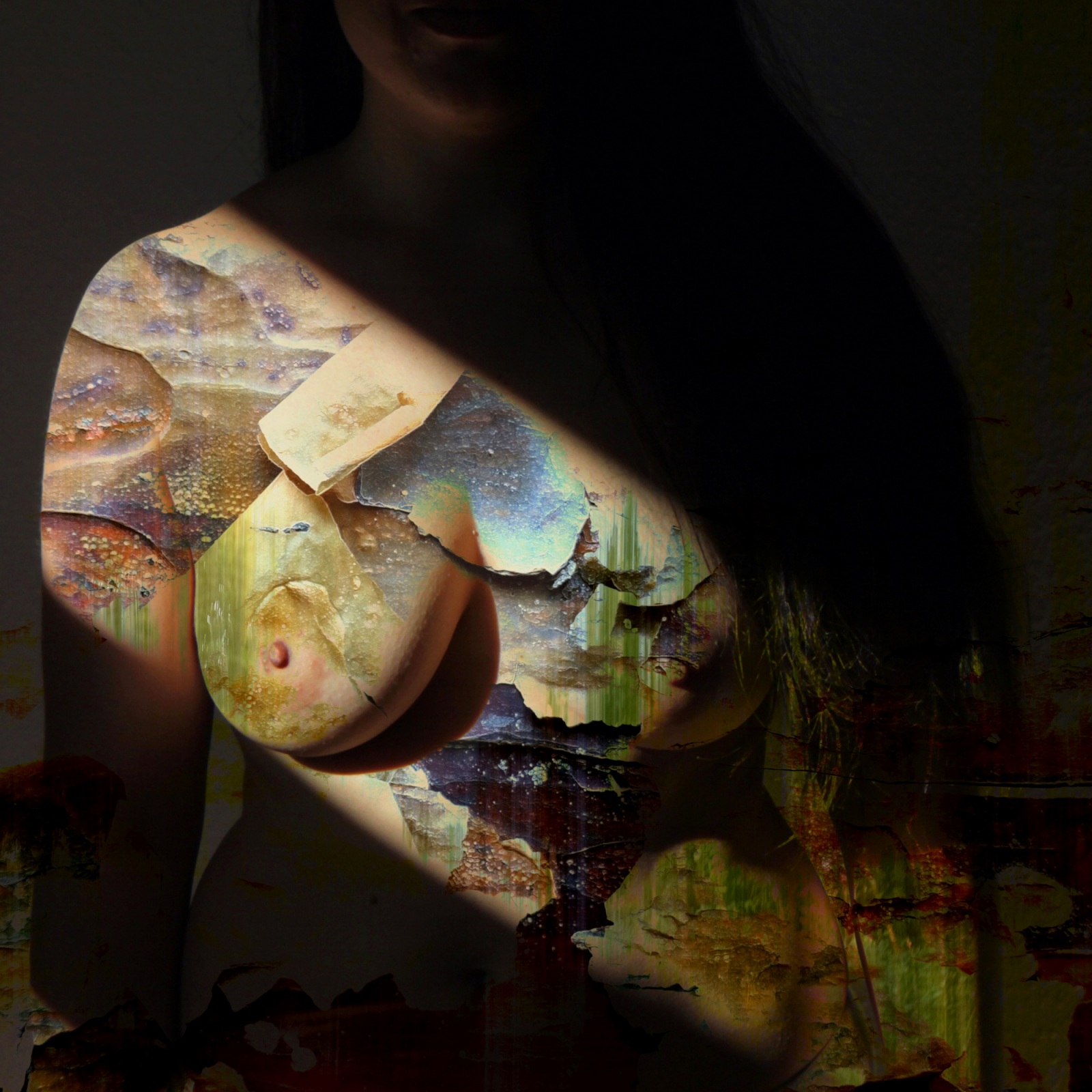 Der Begriff und die von im angeleitete Musik hat mich zu einigen fotografischen Arbeiten angeregt (vielleicht weil der Begriff gerade gut zu meinem aktuellen Lebensgefühl paßt). Über die Entstehung der einzelnen Bilder wil ich hier gar nichts weiter schreiben. ‚Produktionstechnisch‘ bemerkenswert ist nur, dass alle Werke dieses kleinen Zyklus (ich zeige unten ein paar Beispiele) auf dem gleichen Ausgangsbild beruhen , das ich digital mit verschiedenen korporalen Arbeiten der letzten zwei Jahre verschmolzen habe. Man erkennt die strukturellen Ähnlichkeiten in den Bildern, sieht aber auch, zu welch unterschiedlichen surrealen Ergebnissen die algorithmischen ‚Integration‘ letztlich führt.