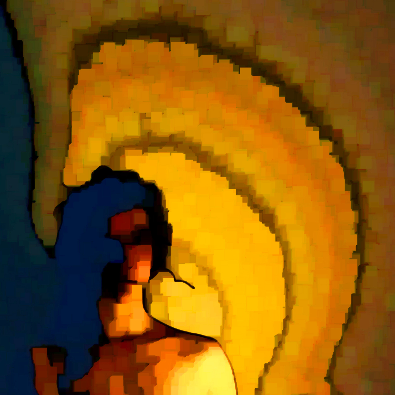 Bereits in der Bildserie Sophia hatte ich einige Ergebnisse einer Fotosession mit Chloe im Jahre 2018 vorgestellt. In der Zwischenzeit habe ich mit einigen Aufnahmen aus dieser Serie weitergearbeitet. Dabei habe ich für die spezielle Textur zahllose, einzeln mit der Hand gemalte Quadrate eingefügt… was selbstredend ein Scherz ist. Bei mir wird nichts einzeln mit der Hand gemalt. Das übernehmen Algorithmen für mich. Aber manchmal kommt etwas dabei heraus, das genau diesen Eindruck erweckt: malerisches Handwerk. Doch der Schein täuscht – wie so oft bei der digitalen Bildbearbeitung. Doch gelegentlich tut es gut, sich für einen Moment der Illusion hinzugeben.