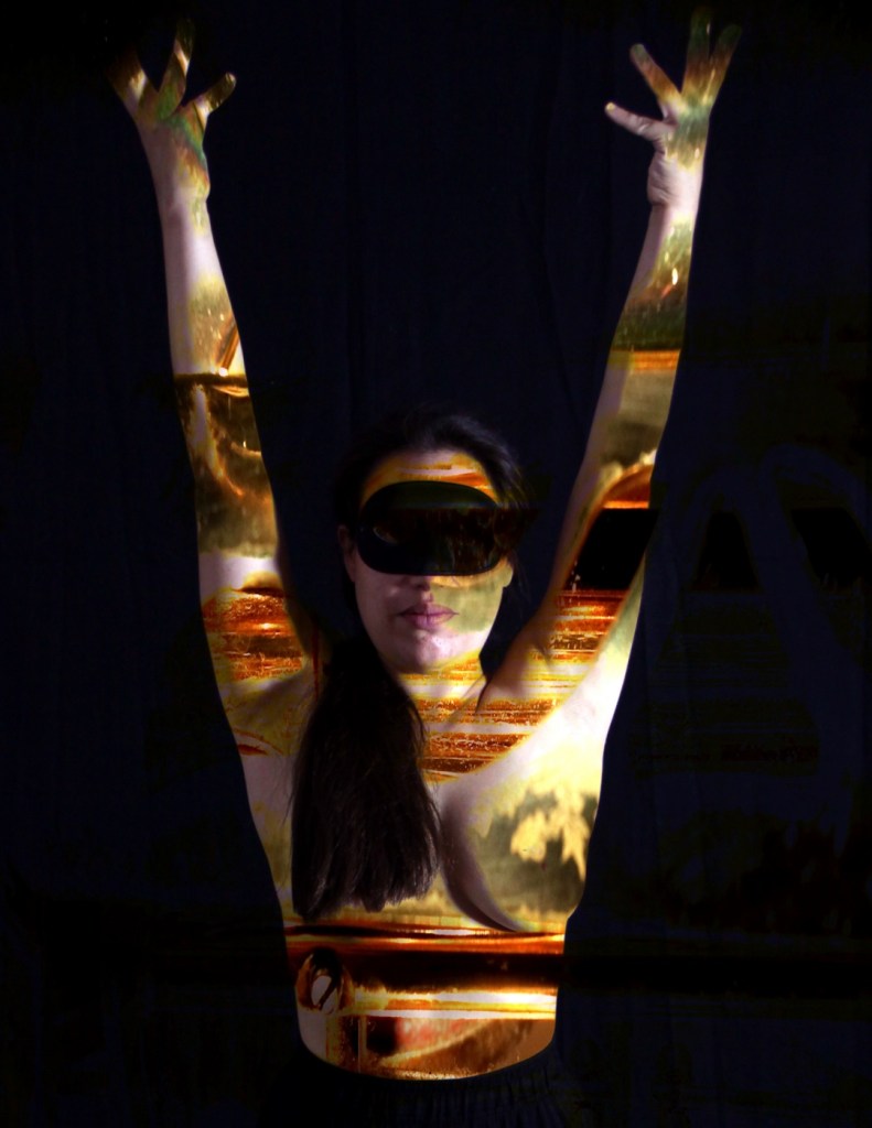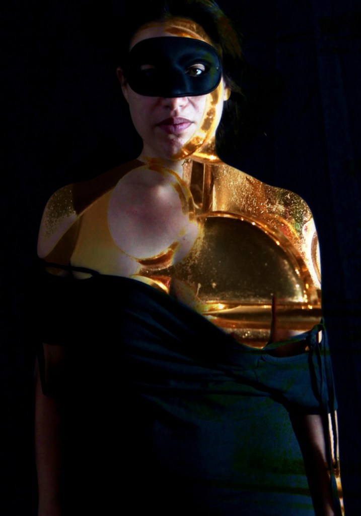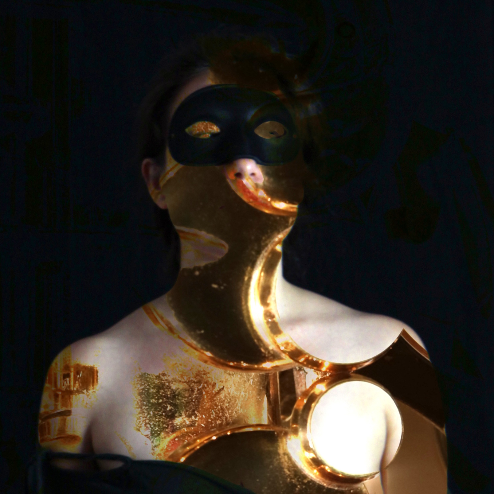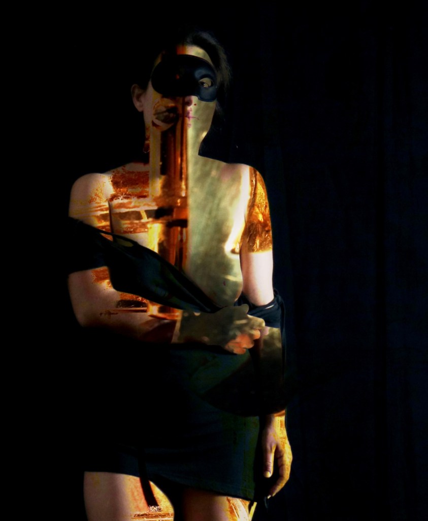 Heute setze ich das Thema Messing fort. Ich habe dafür einige Porträts genutzt, die ich im Jahre 2019 mit meinem chilenischen Modell Andrea Lagos (dank an sie) erarbeitet hatte. Die Ausgangsbilder wurden jeweils wieder mit einem komplexen Metallkörper aus Messing und einigen anderen Materialien verschmolzen. Die Bilder erinnern ein wenig an Beamer-Projektionen auf Gesicht und Körper vor einem schwarzen Hintergrund, sind jedoch diesmal alle digital entstanden.