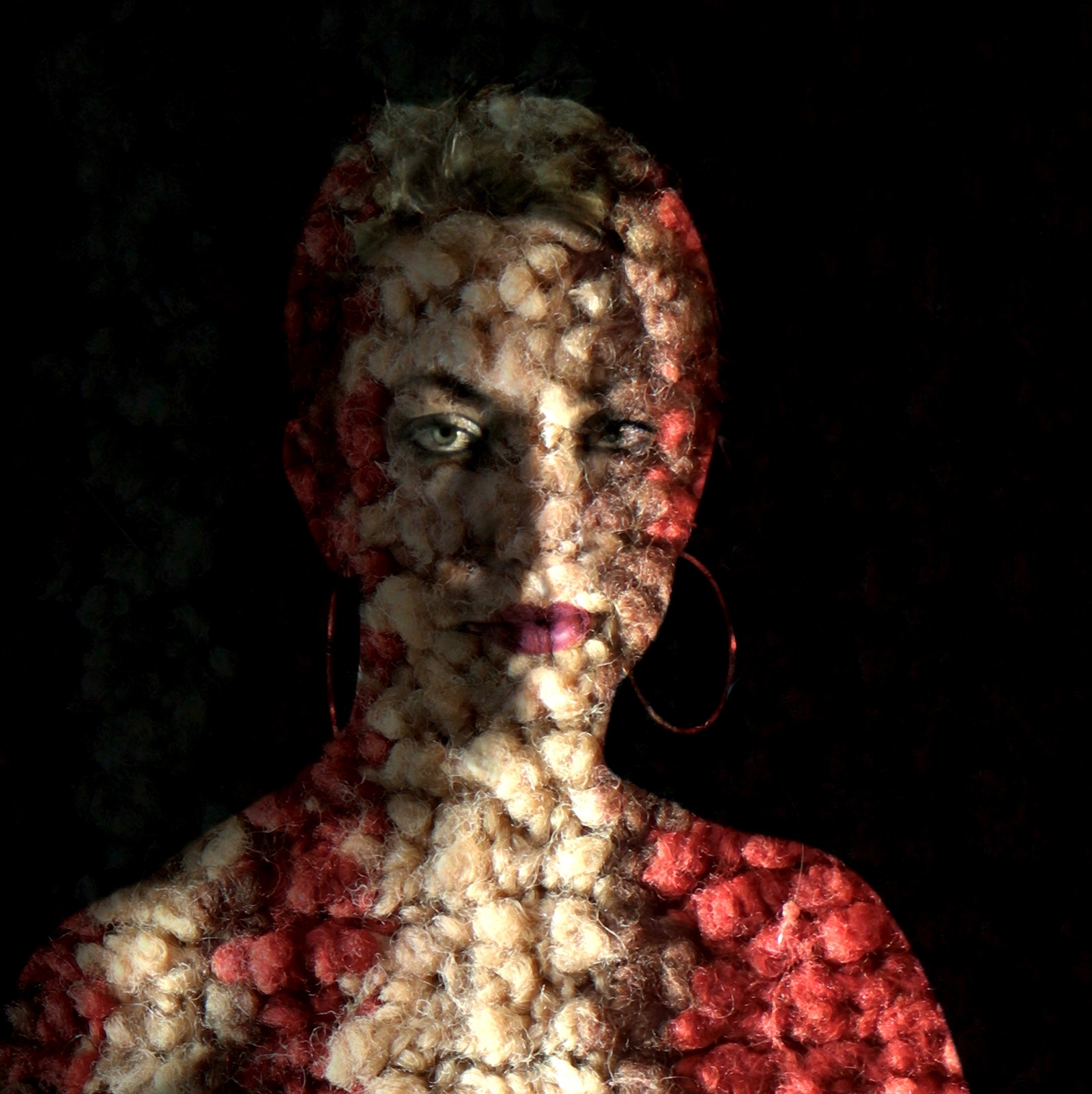 Als ich einer Kunstkollegin von meinem neuen Projekt Schurwolle berichtete, hatte sie sofort eine Idee: Schamhaar. Das ist eine witzige Assoziation – war und ist allerdings ausnahmsweise mal nicht gemeint. Ich hatte eher sozialethische Fragen im Kopf: Seit einem Jahr übertönt das Kriegsgeschrei alle anderen Gedanken. Öffentlich und individuell. Selbst jene Themen, von denen unser aller Überleben abhängig ist, werden in den medialen Debatten an den Rand gedrängt, verschwinden teilweise sogar aus der Öffentlichkeit. Und in der Folge scheinen viele Menschen nicht einmal mehr darüber nachdenken zu können oder zu wollen. Dies gilt nicht nur (wirklich fatal!) für Klimawandel und Artensterben,. Es betrifft ebenso andere Risiken, mit denen wir in den nächsten Jahren konfrontiert sein könnten – etwa der Aufstieg einer KI-basierten Superintelligenz oder auch die um sich greifende Genmanipulation von Pflanzen und Tieren. Zum letzteren Problemkreis gehört die Hybridisierung, die in absehbarer Zukunft auch zur Entstehung von Mischwesen zwischen Mensch und Tier führen könnte. Manchen mag das zu weit hergeholt sein – in kleinem Maßstab wird aber schon lange damit experimentiert. Etliche Biotech-Konzerne arbeiten daran, menschliches Erbgut in tierische Keimzellen einzuschleusen. Und vielleicht sogar umgekehrt – auch wenn dies heute noch ein Tabu ist … und uns bisher nur fiktional gruseln lässt. Doch das könnte sich ändern. Die Frage scheint nicht ob, sondern eher wann die ersten Mensch-Tier-Hybriden geboren werden. Mein Zyklus Schurwolle soll dieses Thema – im doppelten Sinne: oberflächlich betrachtet – in launiger und ästhetisch ansprechender Form adressieren. Und dabei eher spielerisch (wie es die Kunst eben so macht) die unter jener Oberfläche lauernden ethischen Fragen der Reflexion zugänglich machen. Der Projektname ist dabei der ganz und gar wolligen Textur geschuldet, die an der Entstehung aller Bilder beteiligt war. (Dank an Natja von O. für den wolligen Rohstoff.)