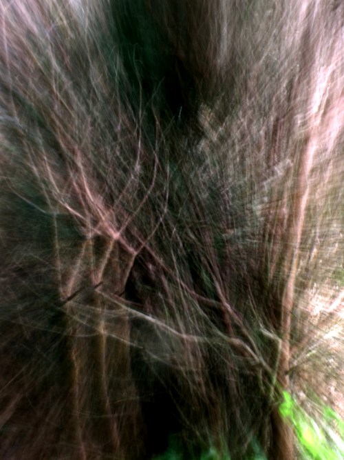 Der heutige Beitrag nimmt das Thema der bewaldeten Impressionen noch einmal auf. Nach 37 Regentagen in Folge ist die Stimmung allerdings etwas düsterer und dadurch vielleicht auch ein klein wenig mystischer. Und das, obwohl die Bilder Ende Juli entstanden sind. Sommerstimmung kommt da nicht auf. Ob diese extrem feuchte Wetterlage eher zufällig entstanden, nur El Niño zu verdanken oder ein (fast erwartbares) Ergebnis des Klimawandels ist, macht vom fotografischen Ergebnis her keinen Unterschied. Zumindest hier im Oldenburger Ammerland ist die Sommerstimmung eine durch und durch herbstliche. Immerhin heißt das aber auch: Man kann sich hineinträumen. Vielleicht sind die Träume dann ein wenig düsterer und drohender – aber zumindest für die Freundinnen und Freunde des Unheimlichen ist das ja durchaus ein Gewinn. Zu erwähnen ist noch, dass die Bilder gänzlich unbearbeitet sind. Sie wurden lediglich ‚in Form geschnitten‘, nicht aber digital verfremdet. Merkwürdige Effekte resultieren allein aus (vorsätzlichen) Unschärfen im fotografischen Prozess. Was einem halt so einfällt, wenn die Regentage lang sind…