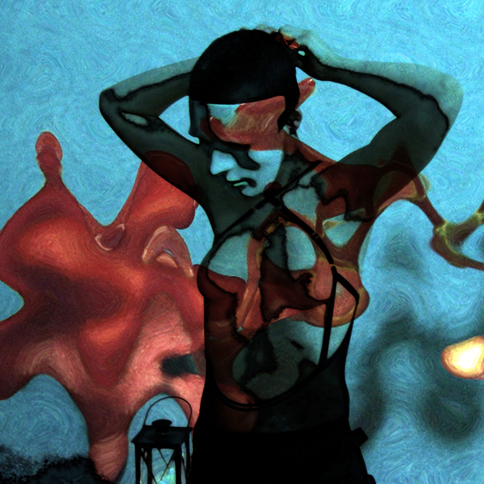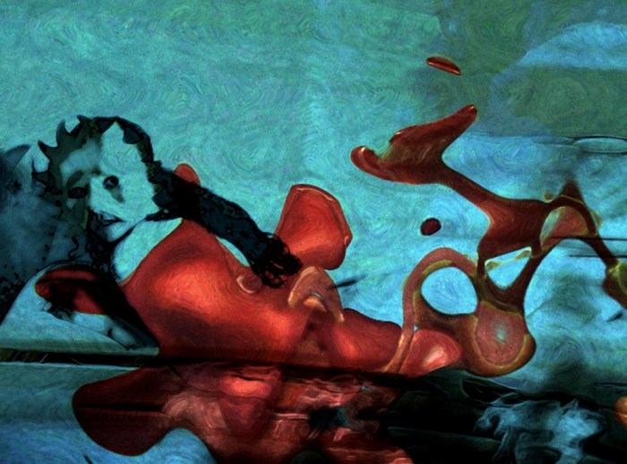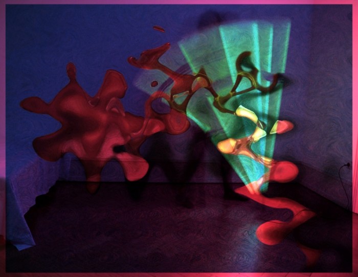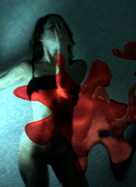 „Ist das Deine diesjährige Adventsserie?“, wurde ich gefragt. Ups – seit wann mache ich Adventsserien? Mein erster Gedanke: hier war der innigliche Wunsch der Betrachterin Ursache der Interpretation. Mein zweiter Gedanken war dann aber: Warum eigentlich nicht? So habe ich das letzte Bilder der Serie, das ursprünglich kurz und knapp Mysterium hieß, spontan unbenannt – und damit dem ganzen Zyklus eine vorweihnachtliche Konnotation verliehen. Eigentlich sollte es bei der neuen Serie um die Farbe Rot gehen, um die mysteriöse bis unheimliche Wirkung, die von ihr ausgehen kann, wenn die davon geprägten Bilder nur genügend Alltagsferne aufweisen. In diesem Sinne war die Serie surreal (ich würde in meiner Sprache sagen surtuell) gedacht: im Mittelpunkt die Verfremdung der Bilder durch eine eigenartige, farblich wie räumlich dominierende Struktur. Eine, die sowohl als amöbenartiges Wesen als auch als diffuses Objekt gedeutet werden kann. Aber nun gut – der Zyklus „Rote Schatten“ ist nun einmal direkt vor Weihnachten entstanden und den einen oder die andere erinnert jene klecksartige Struktur offenbar an einen zerfließenden Weihnachtsstern (oder auch einen Flecken Kerzenwachs). Alles völlig legitime Assoziationen. Wem es also, im Gegensatz zu mir, wichtig ist: Frohe Weihnachten!