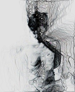 Der Beitragstitel nimmt die Bezeichnung des Zyklus auf, an dem ich seit Jahresbeginn arbeite. Die Bilder machen in der Zusammenschau schnell klar, wie die Serie optisch funktioniert: Den schon vorher stark bearbeiteten Bildern (meist weibliche Halbakte) sind rhizomartige Linien hinzugefügt, die den Eindruck erwecken, die Körper würden sich mäandernd in den umgebenden Raum hinaus ausbreiten, sich vielleicht sogar in ihm verlieren. Diese Linien sind durch einen Algorithmus eingefügt. Viele von ihnen wirken kontingent … und sind dies überwiegend auch, da winzige Unterschiede im Ausgangsbild sich durch die Art der Bearbeitung unerwartbar anhäufen, ja multiplizieren. Bevor das Bild fertig ist, vermag ich selbst nicht genau zu sagen, wie das Endergebnis aussehen wird. Also auch für mich: Bilder mit Überraschungseffekt. Vor diesem Hintergrund scheint die Bezeichnung des Zyklus kontrafaktisch. Dies gilt allerdings nur dann, wenn es darum ginge auf diese Weise den menschlichen Körper zu vermessen. Das ist hier jedoch nicht gemeint. Vielmehr wird anders herum die Silhouette des menschlichen Körper dazu benutzt, den umgebenden, zunächst leeren Raum vermessend zu okkupieren. Dies entspricht dem Prozess, in dem bei der unten empfohlenen Musik von Avishai Cohen die von den Instrumenten ausgehenden Schallwellen die Stille des umgebenden Raums in Besitz nehmen. Daher diese besondere Musikempfehlung. Die hier beschriebene Idee einer Vermessung des Raums durch Körperbilder ist eher abstrakt – damit korrespondiert, dass die Bilder der Serie formalistisch benannt sind. Das muss auf Dauer nicht so bleiben, scheint mir momentan aber passend.